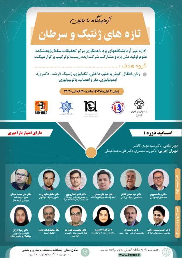 اداره امور آزمایشگاه های یزد با همکاری مرکز نحقیقات سقط پژوهشکده علوم تولید مثل یزد و مشارکت شرکت ایده زیست نوترکیب برگزار می کند: