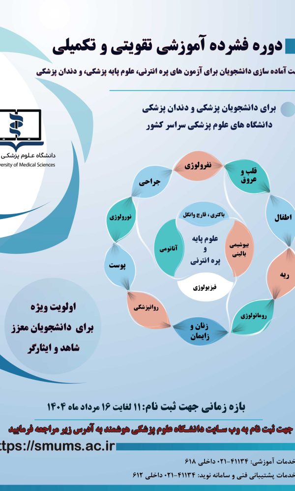 ثبت نام در دوره فشرده آموزشی تقویتی-تکمیلی جهت آماده سازی دانشجویان رشته های پزشکی و دندان پزشکی برای آزمون های جامع علوم پایه پزشکی، دندان پزشکی و پره انترنی