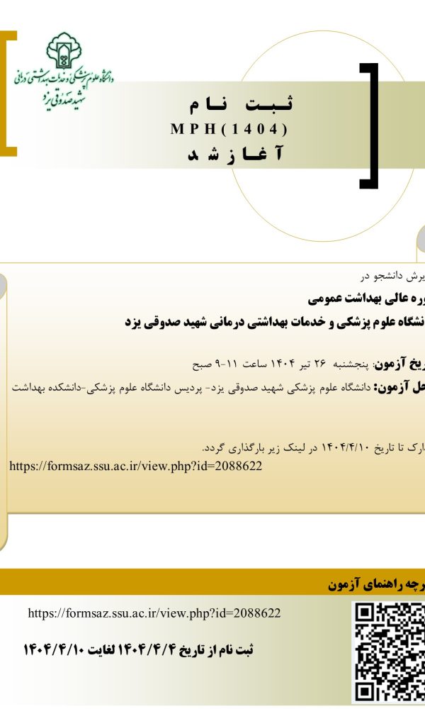 فراخوان برگزاری آزمون پذیرش دانشجو در دوره عالی بهداشت عمومی سال 1404دانشگاه علوم پزشکی شهید صدوقی یزد
