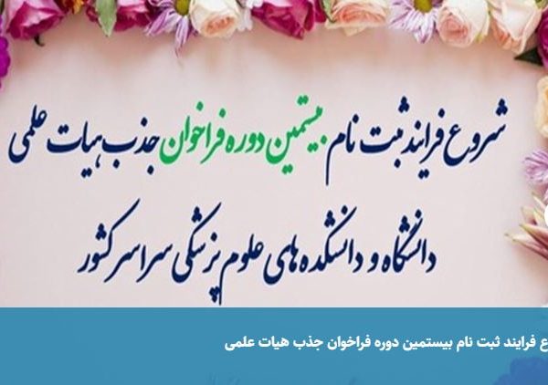 شروع فرایند ثبت نام بیستمین دوره فراخوان جذب هیات علمیروابط عمومی معاونت آموزشی15 بهمن 1402آگهی فراخوان استخدام عضو هیأت علمی پیمانی با استعانت از درگاه خداوند متعال ... اطلاعات بیشتر